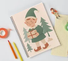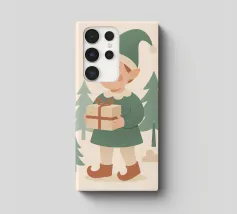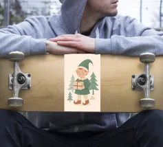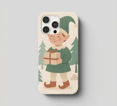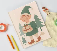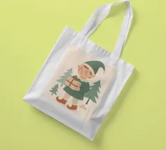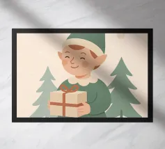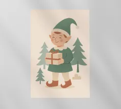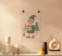 Questo elfo sorridente che tiene in mano un regalo incartato cattura il cuore della donazione natalizia. Disegnata in tenui colori pastello con un'estetica nordica, è una stampa adorabile per i bambini, le famiglie o le collezioni di arte murale festiva.