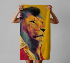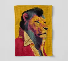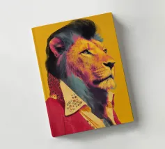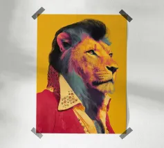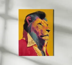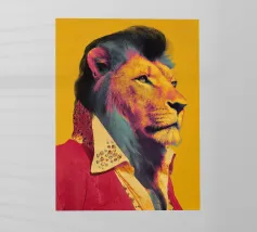 Questo vibrante ritratto di Elvis Presley come un leone celebra il Re del Rock'n'Roll in uno stile pop art unico. Con uno sfondo giallo brillante e colori al neon, la grafica cattura la natura selvaggia dell'icona della musica e combina la cultura pop con l'eleganza degli animali.