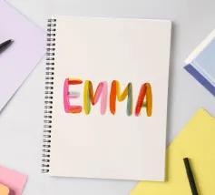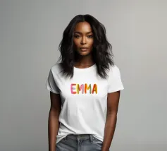Il nome "Emma" è fatto di pennellate colorate e allegre.