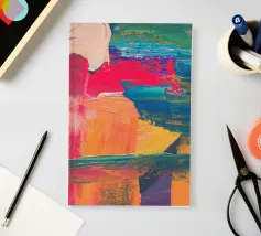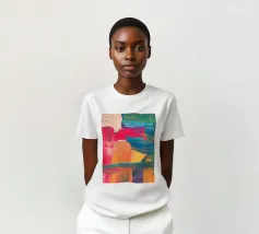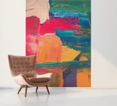 Tratti audaci di colori vivaci come il rosso, il giallo, il verde e il blu creano un'energica composizione astratta. Il gioco delle diverse tonalità aggiunge profondità e dinamismo all'esperienza visiva.