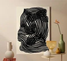 "Equilibrium" esplora l'armonia tra forme e spazi. L'opera presenta una serie di cerchi, triangoli e rettangoli disposti con precisione quasi architettonica. Ogni elemento trova il suo posto in una composizione attentamente bilanciata, dove i pieni e i vuoti interagiscono in un sottile gioco di tensione e rilascio.