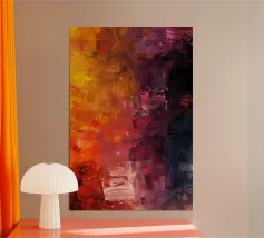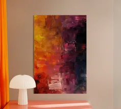 Questo vibrante dipinto astratto a olio evoca emozioni crude attraverso pennellate audaci e spesse che mescolano arance calde, rossi e toni scuri e freddi. L'uso potente del colore e della texture riflette energia e passione, creando un'esplosione visiva di movimento e sentimento. L'opera attira lo spettatore con la sua composizione dinamica, offrendo un'esperienza coinvolgente che sembra al tempo stesso senza tempo e moderna. Perfetto per aggiungere un tocco drammatico ed espressivo a qualsiasi ambiente.