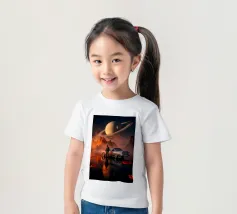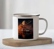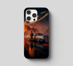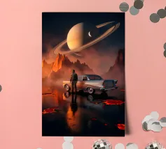 Un viaggio in un'avventura ultraterrena con questa opera d'arte fantascientifica che raffigura un esploratore solitario accanto a un'auto d'epoca in un paesaggio alieno incandescente e illuminato dalla lava. Le imponenti montagne risplendono di luce arancione, mentre un enorme pianeta simile a Saturno domina il cielo stellato. I riflessi drammatici, la nebbia atmosferica e l'estetica retrò creano una scena audace e coinvolgente. Perfetto per gli appassionati di arte spaziale, fantasia futuristica e design d'ispirazione rétro che desiderano un'opera da parete di grande impatto e incentrata sulla storia.