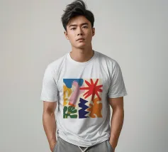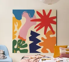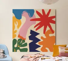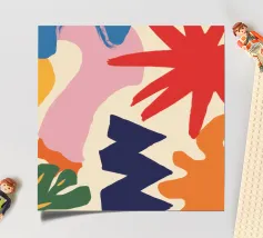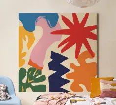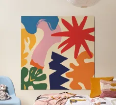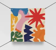 Una composizione astratta che sembra un'esplosione gioiosa di forme e ghirigori colorati e giocosi. L'opera d'arte è puro divertimento disinibito, espresso attraverso colori vibranti e forme energiche.