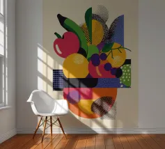 Concedetevi un'opera d'arte vibrante e ricca di vitamine! Questa illustrazione moderna e grafica mescola colori vivaci e forme dinamiche con un effetto accattivante. Perfetta per ravvivare la casa con un tocco pop e contemporaneo.