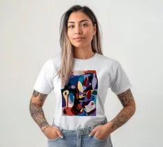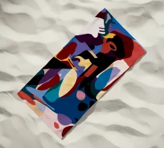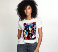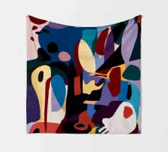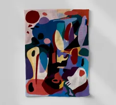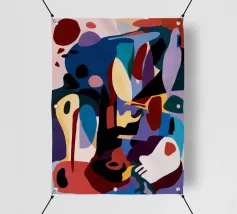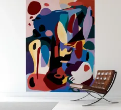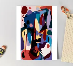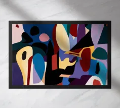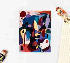 Questo dipinto è una composizione astratta audace e colorata con un mix di forme organiche e geometriche. L'uso di colori vivaci e forme dinamiche crea un senso di movimento ed energia.