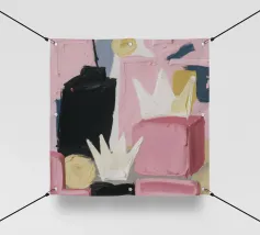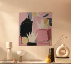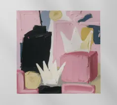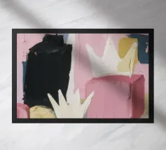 Un'audace opera astratta dominata da pennellate espressive nei toni del rosa, del bianco e del nero. La texture grezza e l'energica applicazione della pittura creano una dichiarazione potente e moderna.