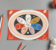 In Evolution No. 15, Hilma af Klint incanala la conoscenza spirituale attraverso una geometria intricata e un colore simbolico. Questa composizione radiosa è incentrata sulla rara stella a sette punte, o eptagramma, un simbolo mistico associato alla trascendenza, al risveglio interiore e all'armonia divina.Hilma af Klint, Evolution No. 15, stella a sette punte, Gruppo IV, 1907 arte astratta, geometria spirituale, Dipinti per il Tempio, primo modernismo, simbolismo teosofico, astrazione mistica, artista visionaria donna, arte sacra, simbolismo esoterico