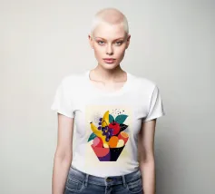 Un vivace mix di frutta dai colori vivaci in uno stile moderno e astratto. Questa vibrante illustrazione evoca freschezza e golosità, perfetta per ravvivare gli interni con un tocco di vitalità.
