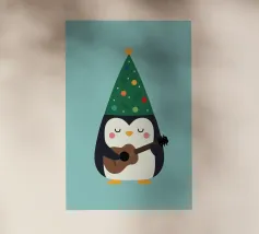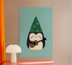 La piccola Pinguina indossa il suo allegro cappello da albero di Natale, imbraccia la chitarra e riempie la notte innevata di soffici "fa la la la~". Il Natale è quasi arrivato! : )