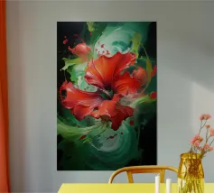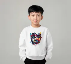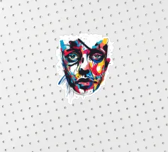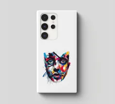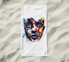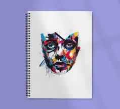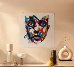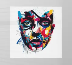 Vivida illustrazione astratta di un volto umano resa con pennellate audaci e vibranti spruzzi di rosso, blu, giallo e nero. I dettagli espressivi evocano emozioni e creatività, fondendo arte moderna e realismo.