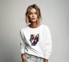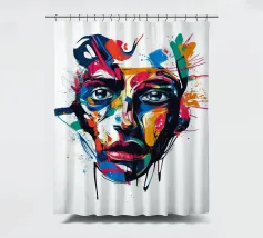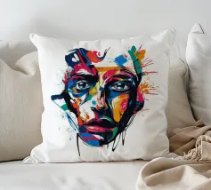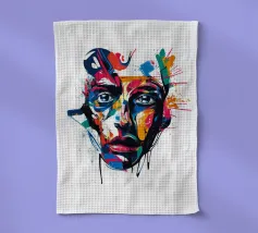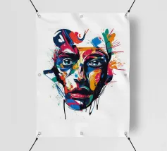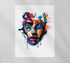Vivida illustrazione astratta di un volto umano resa con pennellate audaci e vibranti spruzzi di rosso, blu, giallo e nero. I dettagli espressivi evocano emozioni e creatività, fondendo arte moderna e realismo.