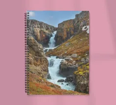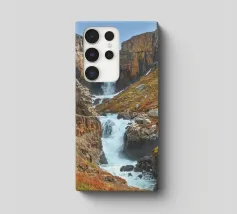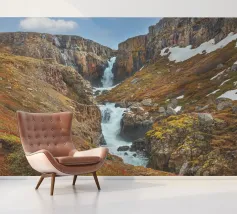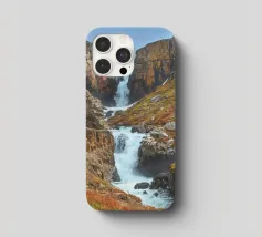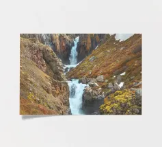 Una lunga cascata sul fianco della montagna a Fardagafoss, in Islanda