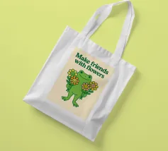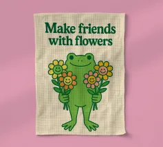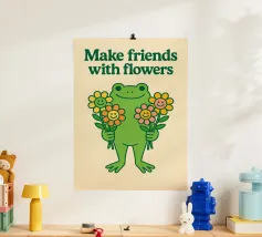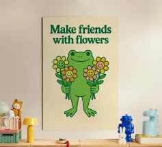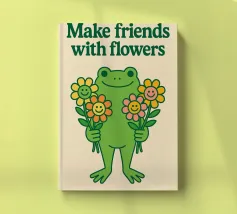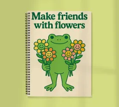 Rana carina con illustrazione di fiori amichevoli