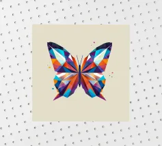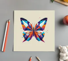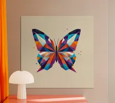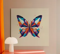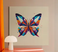 Una farfalla dalle forme geometriche che crea un'esplosione artistica con colori vivaci. Perfetto per chi apprezza la bellezza della natura in forma astratta.Farfalla astratta dai colori vivaci Design geometrico e arte moderna Espressione di libertà e vitalità Colori unici e forme armoniose Ideale per gli amanti dell'arte e della decorazione moderna