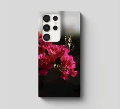 Arte da parete, farfalla rosa e foglie, poster orizzontale opaco, stampa d'arredo, opera d'arte sulla natura, appendimenti da parete in camera da letto
