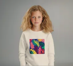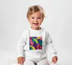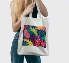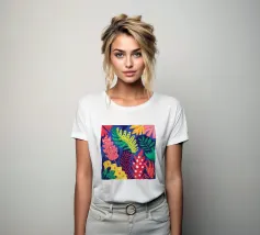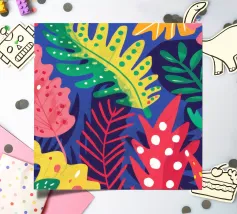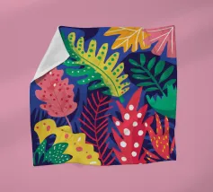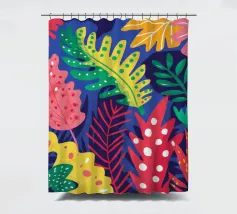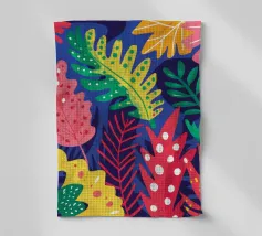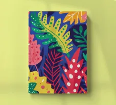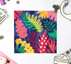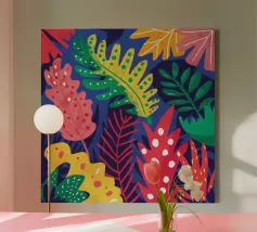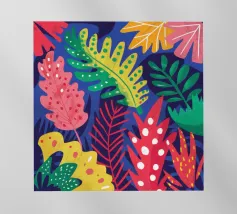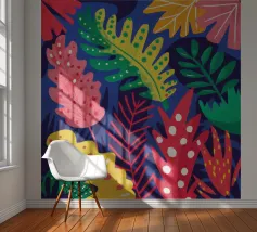 Un'esplosione cromatica e vibrante di foglie e fiori tropicali in uno spettro completo di colori crea un'esperienza di giungla intensamente energica, gioiosa e coinvolgente.