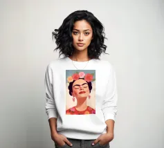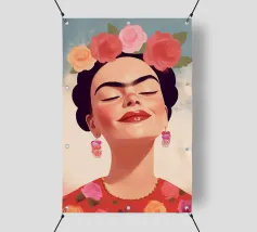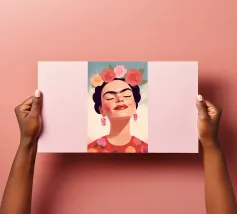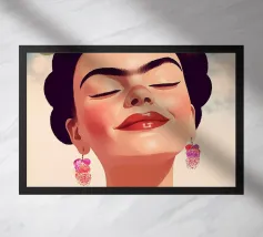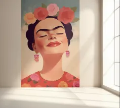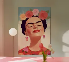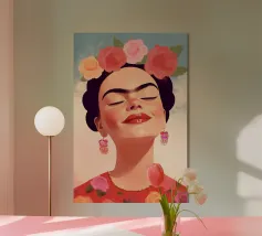 L'allegro autoritratto di Frida Kahlo la ritrae mentre ride con gli occhi chiusi, circondata da nuvole e sole, e incarna la vibrante cultura messicana. Con i suoi abiti tradizionali e colorati, l'opera pastello irradia un forte simbolismo che unisce femminismo e identità culturale ed è perfetta per l'arredamento moderno.