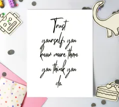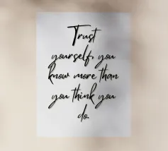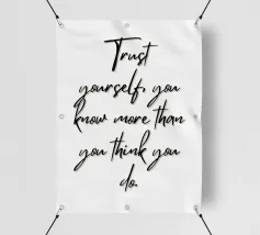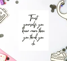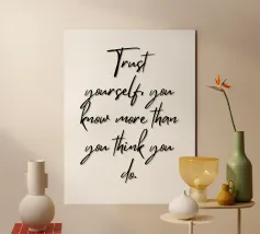 Questa citazione ispiratrice e potenziante serve a ricordare di credere in se stessi e nelle proprie capacità. L'elegante calligrafia e il sottile effetto ombra aggiungono un tocco di raffinatezza a questa opera d'arte motivazionale.