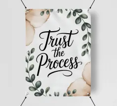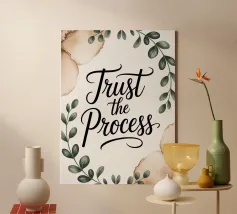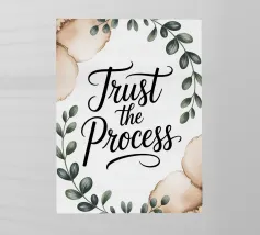 Un tranquillo promemoria per andare avanti con fede. Questa stampa botanica minimalista presenta la potente frase "Trust the Process" (Fidati del processo) in un'elegante scrittura, circondata da morbide foglie acquerellate. Un'aggiunta rilassante a qualsiasi spazio mentale.