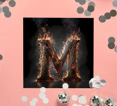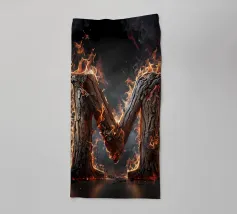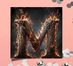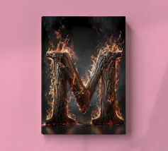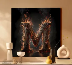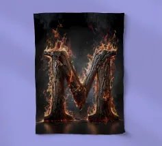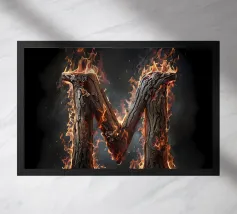 Questa accattivante opera d'arte mostra la lettera "M" in fiamme, trasformandola in un simbolo di potenza e intensità. La lettera è formata da legno carbonizzato, la cui superficie è incisa con i segni del fuoco. Le fiamme danzano intorno alla lettera, proiettando un bagliore etereo e creando un senso di movimento ed energia. Questo pezzo è una suggestiva rappresentazione della lettera "M" e del potere distruttivo del fuoco.