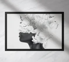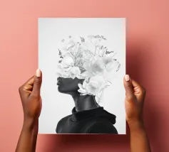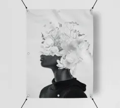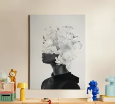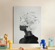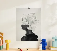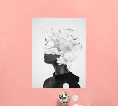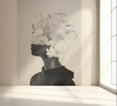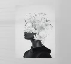 Pesante come il peso del mondo, leggero come il primo respiro dell'autunno. Collage digitale di ritratti floreali surreali