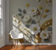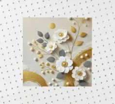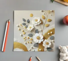 Il colore applicato crea una texture vivace, quasi tangibile, che infonde vita ai fiori. Nonostante le pennellate decise, il dipinto irradia una struttura calma che pone lo spettatore in un dialogo tranquillo con la natura. I colori oro e bianco si armonizzano perfettamente e trasmettono una sensazione di pace e innocenza. Quest'opera d'arte è un'ode alla bellezza tranquilla e travolgente della natura, toccante nella sua semplicità e profondità.