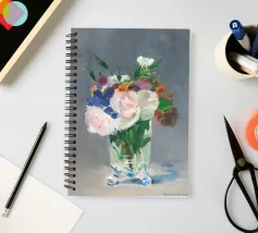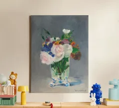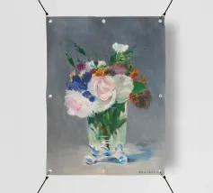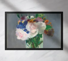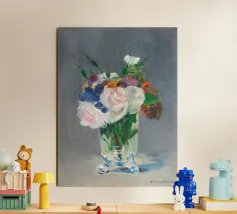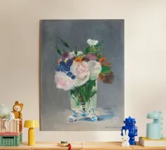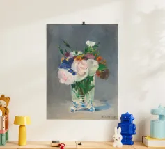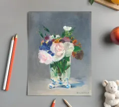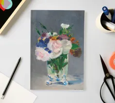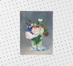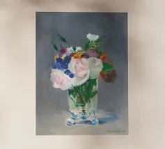Graziosa riproduzione della natura morta dell'ultimo periodo di Manet, Fiori in un vaso di cristallo, dipinta nel 1882 circa. Un delicato bouquet disposto in un luminoso vaso di cristallo, reso con luce, consistenza e tranquilla eleganza. La magistrale pennellata e la sensibilità di Manet per le forme mettono in risalto la fragilità e la bellezza fugace dei fiori recisi Un pezzo senza tempo che aggiunge raffinatezza e fascino romantico a qualsiasi ambiente, dalle pareti delle gallerie agli angoli più raccolti. Impressionismo, nature morte floreali e semplicità poetica nell'arte bellezza sottile, stampa fine art, natura morta iconica, dipinto storico, fiori pastello, arte sua