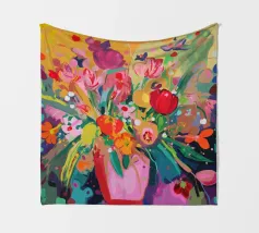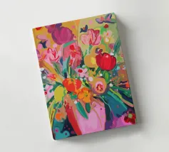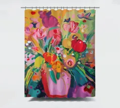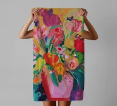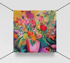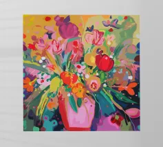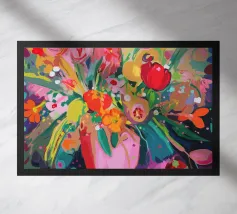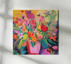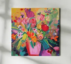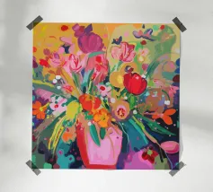 Una colorata stampa pop art con fiori in un vaso stilizzato, perfetta come decorazione murale moderna. I colori vivaci e il design grafico danno vita e stile a qualsiasi ambiente. Ideale per chi ama l'arte floreale con un tocco retrò.