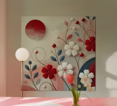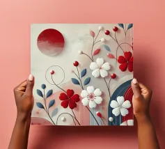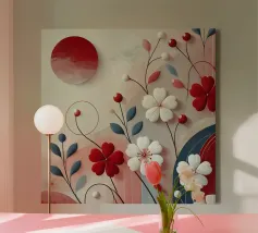 Il colore applicato crea una texture vivace, quasi tangibile, che infonde vita ai fiori. Nonostante le pennellate decise, il dipinto irradia una struttura calma che pone lo spettatore in un dialogo tranquillo con la natura. I colori rosso e bianco si armonizzano perfettamente e trasmettono una sensazione di pace e innocenza. Quest'opera d'arte è un'ode alla bellezza tranquilla e travolgente della natura, toccante nella sua semplicità e profondità.