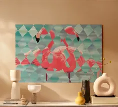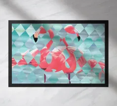 Stampa d'arte a parete di fenicotteri - Decorazioni geometriche tropicali Portate a casa vostra energia vibrante ed eleganza moderna con questa stampa artistica da parete di fenicotteri, che presenta due fenicotteri splendidamente dipinti a mano e reimmaginati attraverso un sorprendente motivo geometrico a rombi. L'opera d'arte originale è stata amorevolmente creata a mano ed è stata trasformata in una stampa di alta qualità, che vi permetterà di godere dei dettagli e della maestria nel vostro spazio. Perfetta per soggiorni, camere da letto, uffici o spazi creativi, questa opera d'arte di ispirazione tropicale combina il fascino giocoso dei fenicotteri con un tocco astratto contemporaneo.