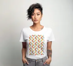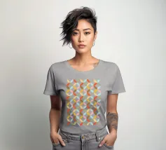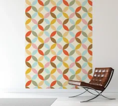 Ispirato al design moderno della metà del secolo scorso, questo motivo presenta forme di petali stilizzati che si intrecciano in una palette di colori caldi e invitanti, come l'arancione, il rosa, il giallo, il blu e il marrone. Le linee pulite e il motivo ripetuto evocano un senso di stile classico dell'era atomica. Fate un salto indietro nel tempo con questo accattivante motivo geometrico retrò. Creato da showmemars