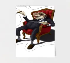 Un'arguta illustrazione di un rospo vittoriano che descrive la sua disavventura al ristorante.