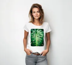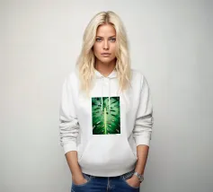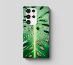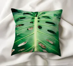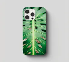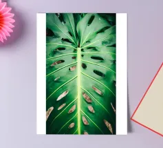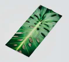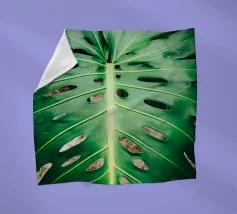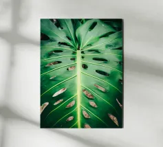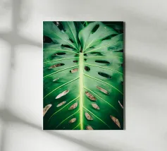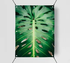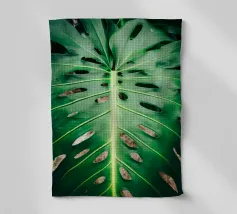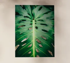 Una foglia verde segnata da fori, la cui superficie delicata è traforata come un merletto, che le conferisce un aspetto fragile ma bellissimo.