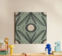 "Folk Bloom Radiance - Charcoal & Sage" conferisce al vostro spazio un'estetica rustica e moderna. Con motivi floreali color carbone su uno sfondo verde salvia, questo disegno offre una tavolozza rilassante e ispirata alla natura, abbinata a un fascino folk di metà secolo. Perfetta per gli interni che mescolano texture organiche ed eleganza vintage, quest'opera d'arte aggiunge calore, struttura e fascino senza tempo a qualsiasi ambiente.