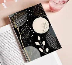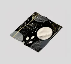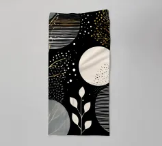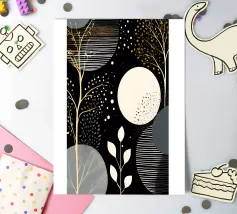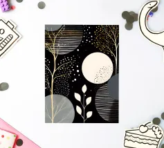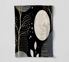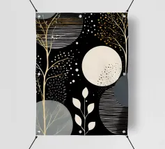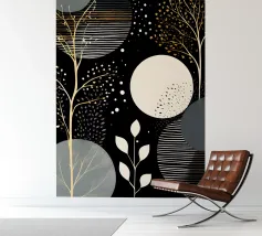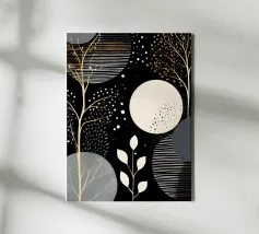 Questa opera d'arte astratta presenta un delicato gioco di rami dorati, forme organiche e motivi strutturati su uno sfondo scuro. L'opera evoca un senso di tranquillità e bellezza della natura, rendendola un'aggiunta perfetta a qualsiasi interno contemporaneo.