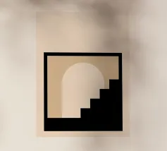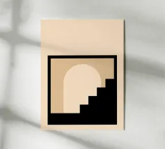 "Stairway Shape" è un design minimalista che gioca con forme semplici e profondità architettonica. La scala a contrasto e l'arco a tutto sesto creano un'estetica calma e moderna. Ideale per gli amanti dell'architettura, delle linee pulite e dell'arte geometrica. Perfetto per interni contemporanei, uffici domestici o pareti di gallerie urbane.