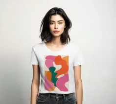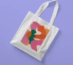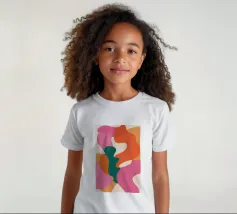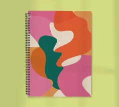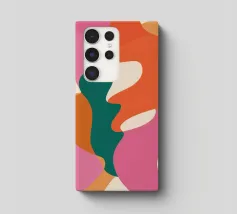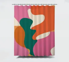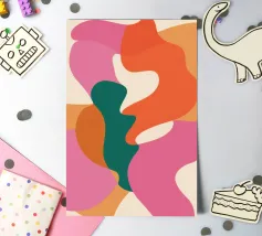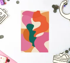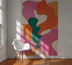 Una vibrante e fluida composizione astratta di grandi forme organiche intrecciate in una vivace tavolozza di rosa, verde e arancione. L'opera è moderna, giocosa e ha un senso di movimento dolce e fluido.