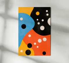 Un formaggio così grande: astratto e colorato e soprattutto con i buchi, proprio come dovrebbe essere un formaggio. Un gioco visivo di colori, superfici e forme. Questo motivo combina una composizione organica con il chiaro linguaggio del design moderno di metà secolo. Il blu, il giallo e l'arancione incontrano il nero profondo, intervallati da cerchi a contrasto che ricordano molecole, pianeti o bolle di sapone. Un design che sembra al tempo stesso retrò e futuristico e che trasforma qualsiasi stanza in un campo di tensione creativa. Se ci avete preso gusto, questo "formaggio" fa per voi.