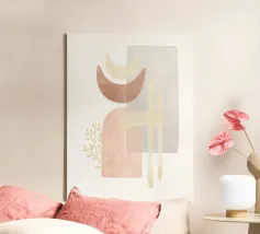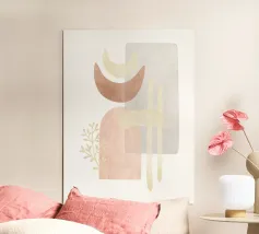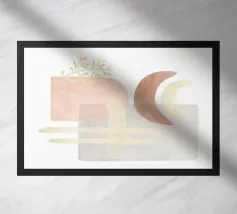 Un gioco armonioso di forme astratte e colori tenui, ispirato all'estetica boho. Questa composizione moderna combina le morbide tonalità della terra con linee organiche ed elementi geometrici per creare un'atmosfera calma ed elegante. Ideale come murale, cuscino, tazza o custodia per cellulare, questo disegno porterà un senso di serenità ed eleganza senza tempo alla vostra casa. Perfetto per chi ama il design boho minimalista e l'arte contemporanea.