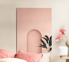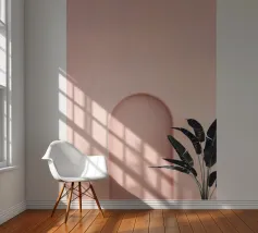 Questo design moderno combina forme morbide e curve con il verde fresco di una pianta tropicale. I tenui colori pastello e il design chiaro e minimalista creano un'atmosfera armoniosa e tranquilla. La semplice curva della parete sottolinea il motivo e conferisce all'ambiente un'elegante profondità. Perfetto per gli amanti dello stile minimalista e degli accenti botanici moderni, questo motivo si abbina perfettamente ad accessori per la casa come murales, cuscini o tazze e aggiunge uno stile chic senza tempo alla vostra casa.