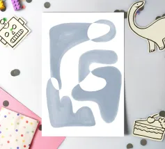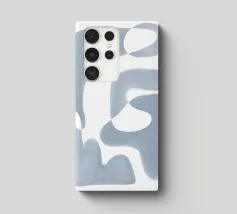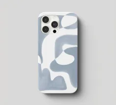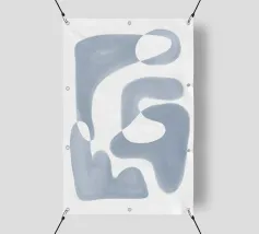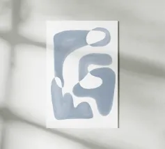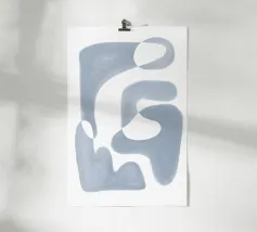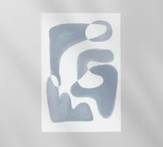 Quadro astratto dinamico con forme curve e irregolari interconnesse in azzurro e bianco. Perfetto per l'arredamento moderno e le collezioni d'arte contemporanea.