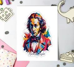 Onorate il genio musicale di Frederic Chopin con questo vivace disegno Pop Art di WPAP. Caratterizzata da audaci forme geometriche e da una ricca tavolozza di colori, questa opera d'arte reinterpreta l'iconico compositore in uno stile moderno e astratto. La tecnica WPAP (Wedha's Pop Art Portrait) infonde energia all'immagine di Chopin, riflettendo la sua passione e il suo profondo impatto sulla musica classica. Perfetto per gli amanti della musica, gli appassionati d'arte e i fan delle melodie senza tempo, questo disegno è un suggestivo tributo a uno dei più grandi compositori dell'epoca romantica.