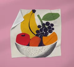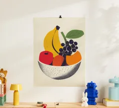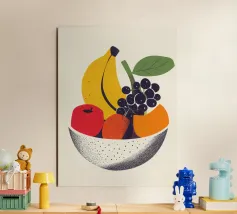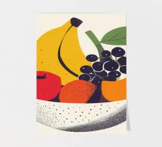 Minimalista e audace, questa natura morta reinterpreta il classico cesto di frutta con un'estetica elegante e contemporanea. Un tocco grafico che porterà freschezza e modernità alla vostra casa.