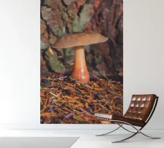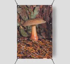 Un primo piano di un piccolo fungo nel bosco