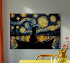 gatto barca notte riflessione alberi fiume acqua stelle cielo vorticoso cielo notturno silhouette paesaggio urbano luci nuvole luna banche natura orizzonte tranquillità calma