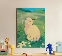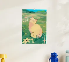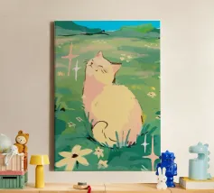 gatto sole campo fiori scintille verde cielo blu natura relax erba all'aperto floreale prato baffi orecchie estate sfondo appagamento fiori di campo pelliccia
