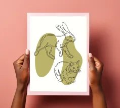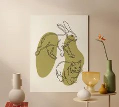 Un'amicizia inaspettata! Questo simpatico disegno presenta un adorabile gatto e un coniglio insieme.