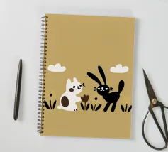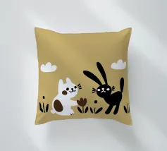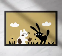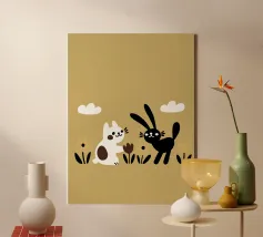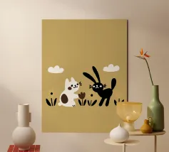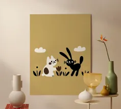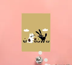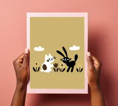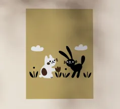 Godetevi le splendide illustrazioni di gatti e conigli che giocano con un design minimalista ma elegante.