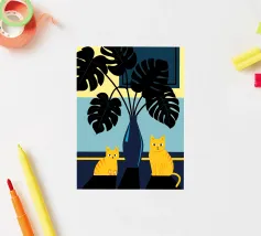 Una combinazione unica di bellezza naturale e personaggi adorabili! Questa collezione combina il design tropicale ed elegante delle foglie di monstera con la simpatia di gatti giocherelloni.